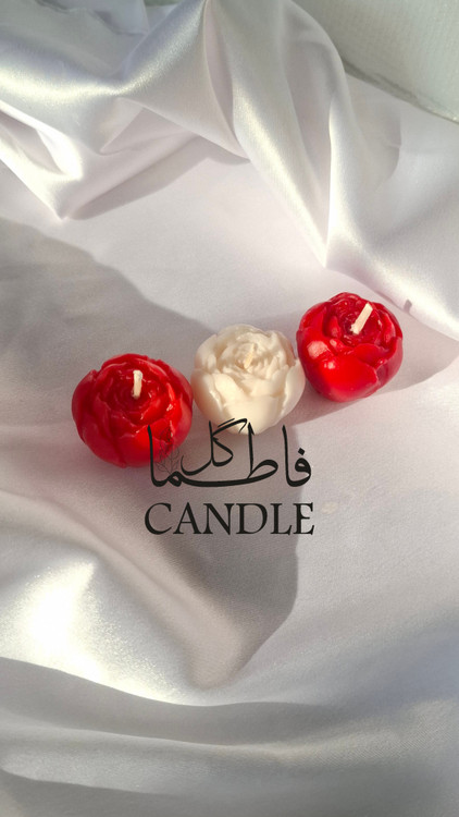 (۳ عدد گل پیونی / ۲ عدد قلمی بیزوکس / یک عدد شمع ظرفی)