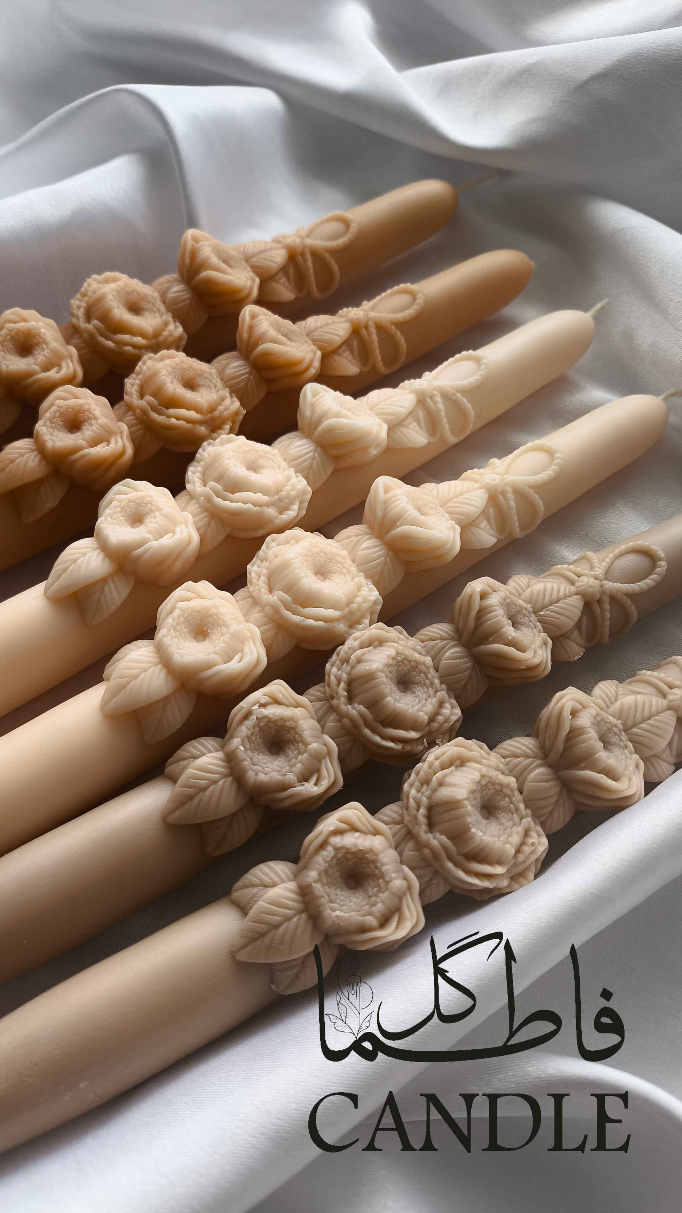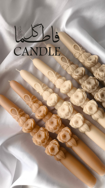🕯شمع قلمی ۲۰ سانتی با طرح سه گل
